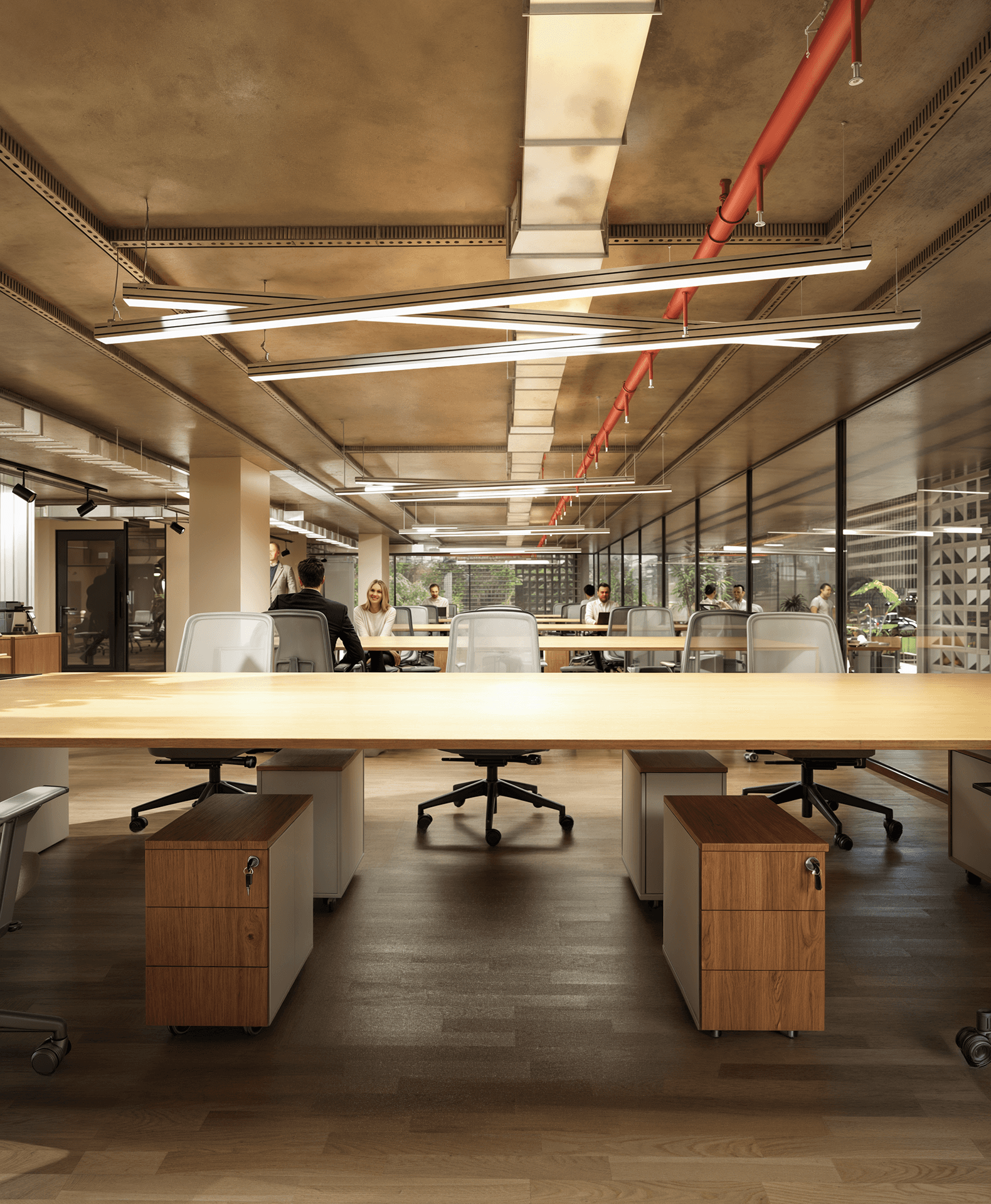 Um dos eixos centrais do programa é a decisão estratégica pelo retrofit de um edifício anteriormente inutilizado, substituindo a lógica de demolição por uma revitalização estrutural completa. A preservação integral da estrutura existente, aliada à renovação de fachada e à modernização total das instalações, reduz de forma significativa o carbono incorporado do empreendimento, evitando emissões associadas à produção de concreto e aço — materiais com elevada intensidade de CO₂ em sua cadeia produtiva. Estudos internacionais indicam que o retrofit pode reduzir entre 50% e 70% das emissões em comparação a uma nova construção, ao manter a energia já incorporada à edificação original e minimizar a geração de resíduos da construção civil. Trata-se de uma decisão técnica que transforma sustentabilidade em ação concreta de projeto.