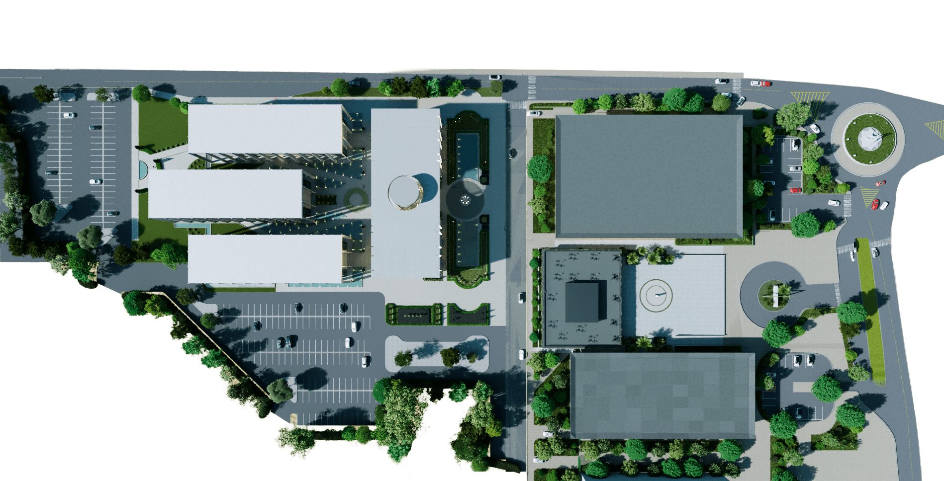 O Programa Cubatão estrutura uma transformação urbana e administrativa de grande escala, articulando eficiência pública, identidade territorial e requalificação do espaço urbano. O novo Centro Administrativo, implantado na área do antigo cartório ao lado da atual Prefeitura, consolida em um único complexo o gabinete do prefeito e todas as secretarias, reduzindo custos operacionais associados à dispersão de equipes e elevando a eficiência de gestão do município. Com projeção de longo prazo, o edifício propõe espaços de trabalho contemporâneos e uma arquitetura simbólica que reativa o pertencimento local, traduzindo a geografia de Cubatão — o aço das indústrias, a Mata Atlântica e a água — como linguagem institucional.